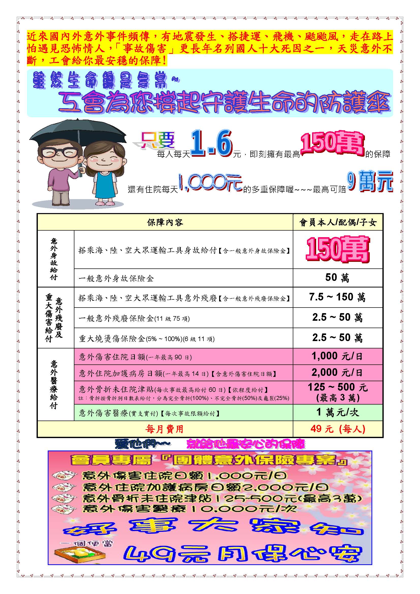 49元團體保險意外險保障內容