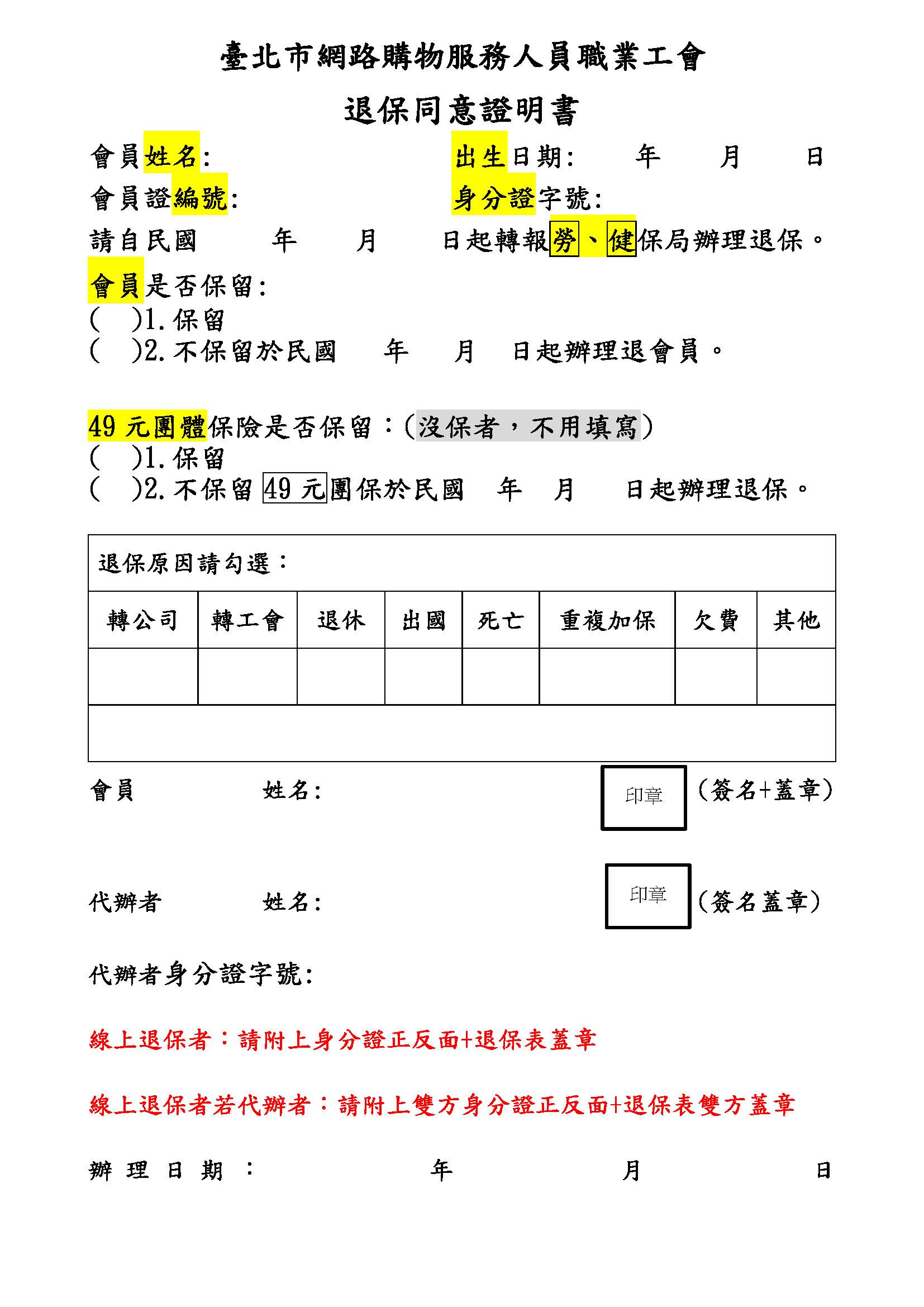 ,請詳閱退保規則,親簽用印完拍照上傳官方LINE給工會或至現場辦理。